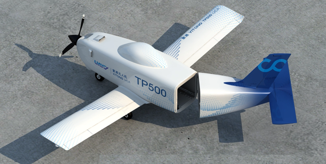 ? ? TP500多用途大型無人駕駛運(yùn)輸機(jī),該款產(chǎn)品采用常規(guī)布局,下單翼,裝配單臺(tái)活塞發(fā)動(dòng)機(jī),前三點(diǎn)固定式起落架,后機(jī)身整體側(cè)開式貨艙門,整體模塊化貨艙。機(jī)體配備自研飛行控制與管理系統(tǒng),與地面站、任務(wù)載荷以及綜合保障系統(tǒng)共同組成TP500型無人機(jī)系統(tǒng)。該機(jī)型具備航程長、續(xù)航時(shí)間長、承載能力大、艙容量大、起降要求低(可在非鋪裝跑道起降)、整體模塊化貨艙等特點(diǎn)。